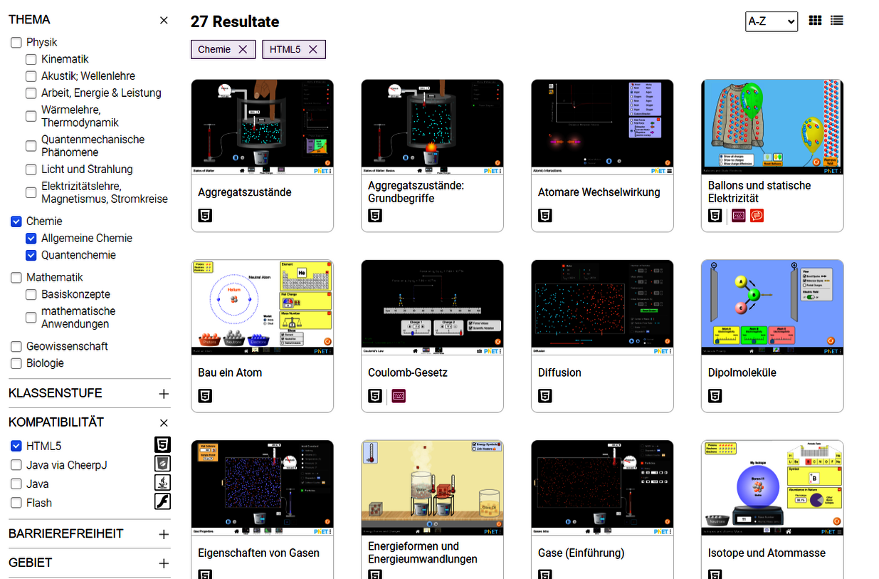 Eine Zusammenstellung verschiedener Simulationen für den Chemieunterricht.
